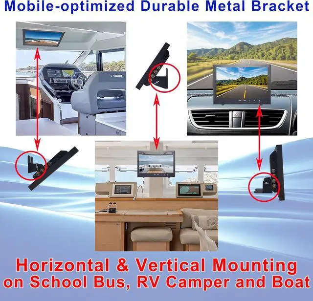 5. Construction-black Metal bezel and removable metal bracket. Mobile-optimized durable metal brackets; design for both horizontal and vertical mounting on vehicles, buses, and boats. Metal bezels can protect sensitive components or displays from damage or scratches. Standard VESA wall mount holes for wall mount installations.