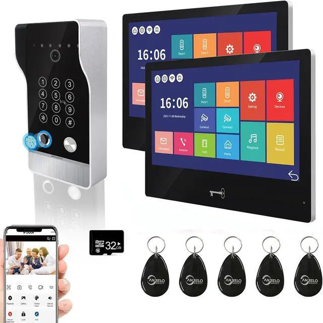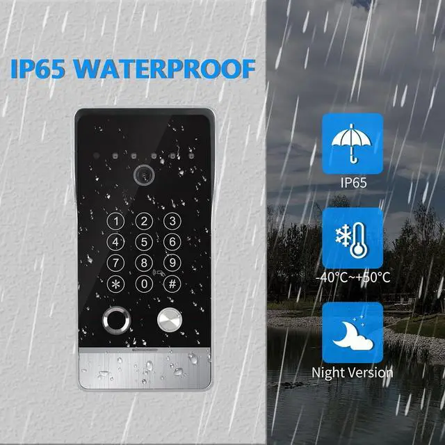 10 INCH TOUCH MONITOE AND 1080P DOORBELL:10 inch touch screen monitor, touch operation, hands-free, support Wifi to connect to the Internet. Outdoor doorbell with waterproof cover, built-in infrared sensor and 1080P camera,148o wide angle, night vision, waterproof, dustproof and vandal resistant. You can connect all 12V electronic locks.