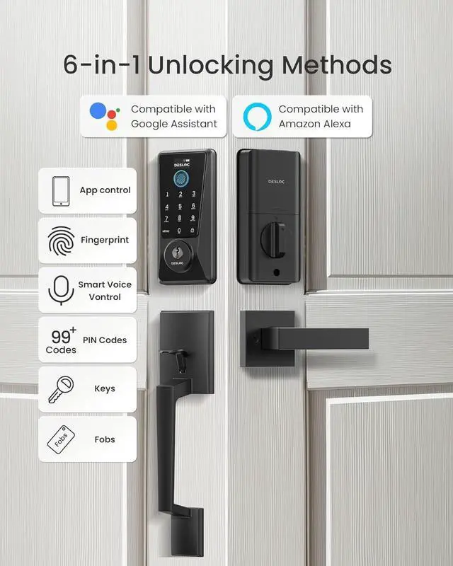 : Powered by FlashPrint Algorithm technology, fast unlock the door less than 0.5s with fingerprint. You can also enjoy keyless entry with passcodes, voices or app. Or unlock with mechanical keys and fobs. Compatible with Google Assistant and Alexa for convenient hands-free access anytime
