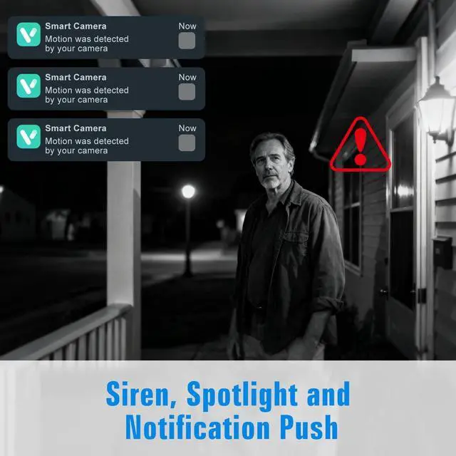 Two-Way Talk & Smart Siren AlarmWith two-way audio, you can speak and listen through the camera via your phonewarn off trespassers, chat with delivery drivers, or check in on loved ones. The siren and strobe light add extra security, deterring unwanted visitors instantly.