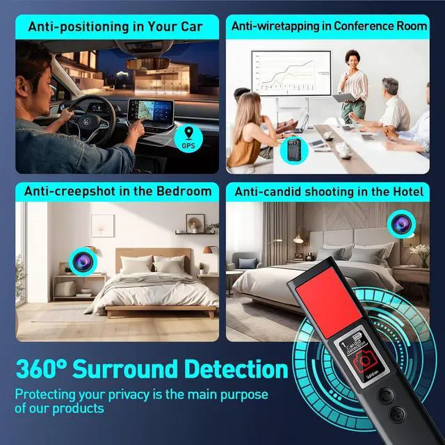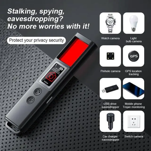 Lightweight and portable:Anti-spy camera detector made of advanced PC material with advanced smart chip design, small in size (26*115*10mm) and light in weight (20g), Camera detectors are usually compact in size and easy to carry.