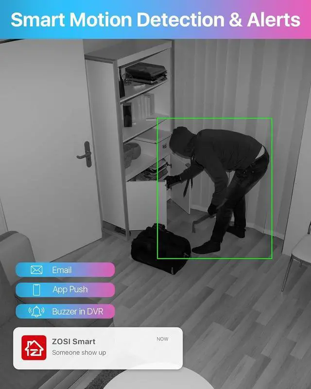 [Accurate Person and Vehicle Detection] With AI-powered detection system that accurately identifies and alerts you to any person or vehicle. Stay connected with our free app for live view and playback on your smart devices from anywhere, anytime