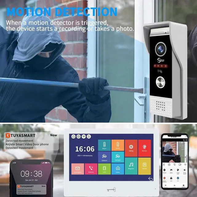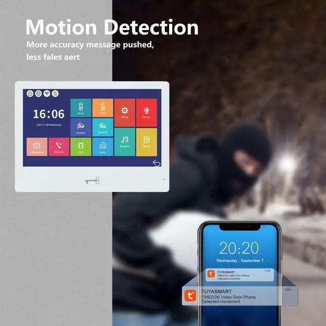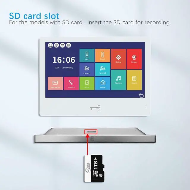 3-in-1 Unlocking System: This video doorbell offers three flexible unlocking methods: IC card, Tuya Smart App, and the indoor monitor itself. For added convenience, five IC cards are included, allowing seamless access control whenever you need to grant entry