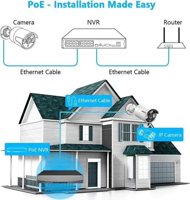 {2.7K / 5Megapixel Super HD} Super HD 5.0MP cameras Capture crystal clear videos day & night. The 3 infrared array LEDs allow you to get high-quality night vision up to 65ft, helping you to protect your property even at night.