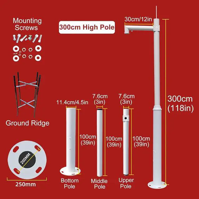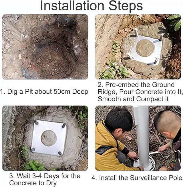 Installtion: This security camera pole can be installed in the highway, street, yard, and other empty space without worrying. Soil floors are suitable for mounting with the included pre-buried ground ridge. Concrete floors can also be mounted directly with expansion screws.