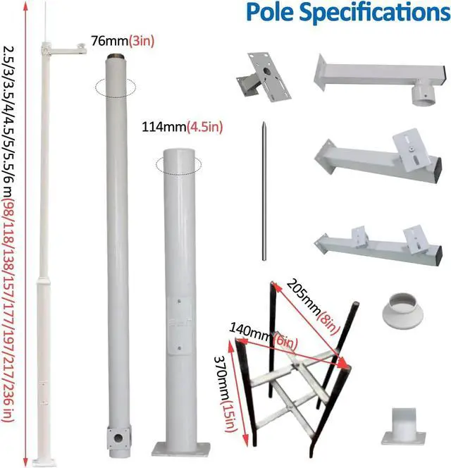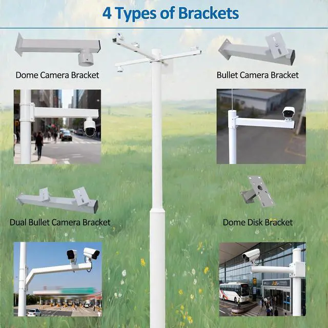 Adjustable and Easy To Install: Featuring a two-section split assembly design, our surveillance pole offers multi-level height adjustment to meet diverse requirements. The split-pole structure enables quick and convenient installationsimply secure each section with screws, then connect the pole base to the rebar cage for a stable and reliable setup.