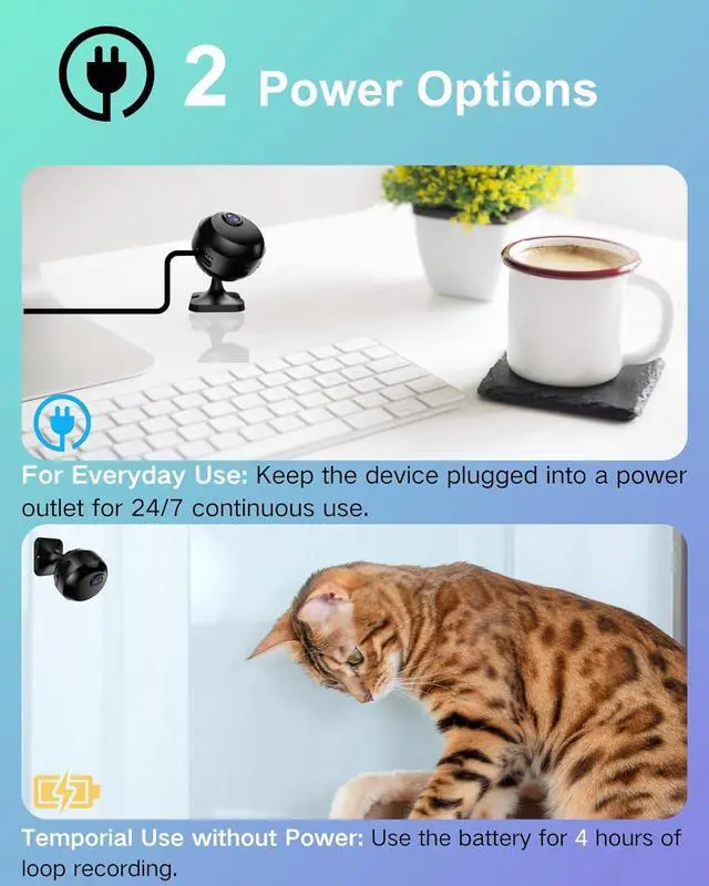 Mini WiFi Camera :Supports 2.4G Wi-Fi Connection, easy to setup and check live streaming on phone app