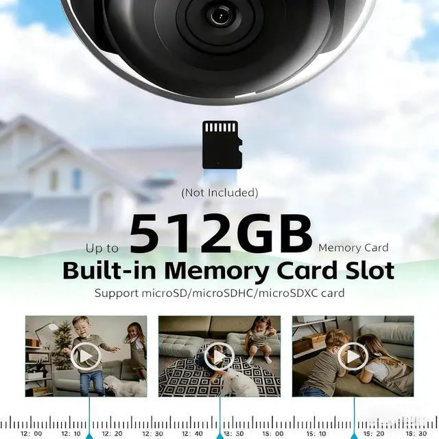 Enjoy convenient on-board storage with a built-in microSD card slot that supports up to 512 GB capacity, providing ample space for extended recording without requiring external devices. It ensures reliable local data storage with easy access to your video whenever needed