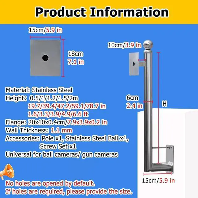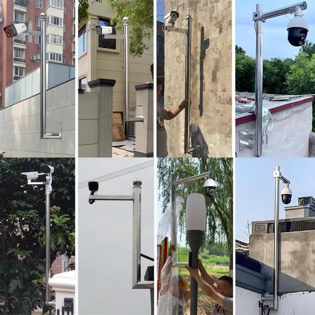 Wall-mounted Security Camera Pole: Rust-resistant stainless steel, 6 cm/ 2.4 in diameter, 1.1 mm wall thickness, no joints or gaps, capable of withstanding strong outdoor winds and preventing shaking, ensuring the stability of surveillance equipment