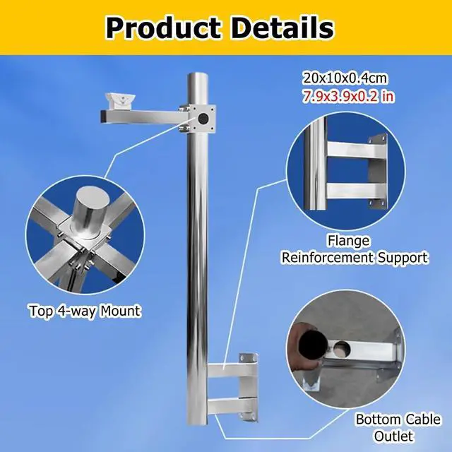 Easy Installationl: Complete screw accessories. Just fix the cross arm to the main pole, and then firmly fix the main pole to the wall. The double pole at the bottom base increases stability, allowing for secure installation and stable support, even in strong winds