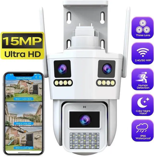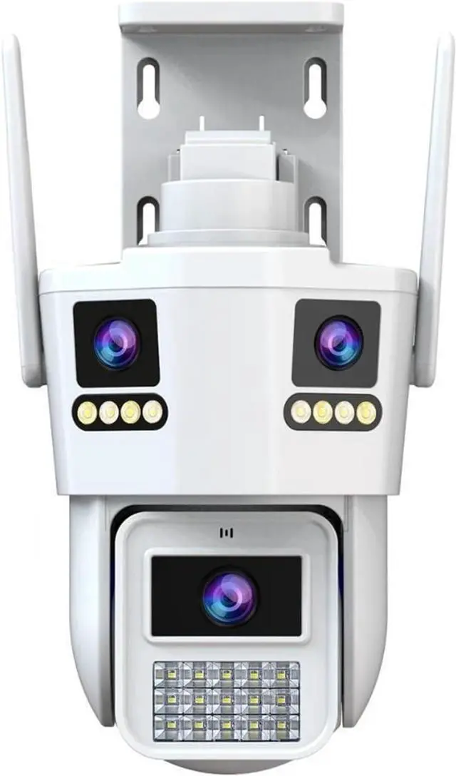 Three-lens three-screen + 360° panoramic: The design of three lenses combined with three screens for display. The top has two fixed lenses for monitoring, and the bottom has a PTZ lens that supports 355° horizontal rotation and 90° vertical adjustment. The three-dimensional coverage achieves a nearly 360° field of view. It also allows for free switching to single-mirror close-up mode. Every corner of a home or shop can be clearly controlled.