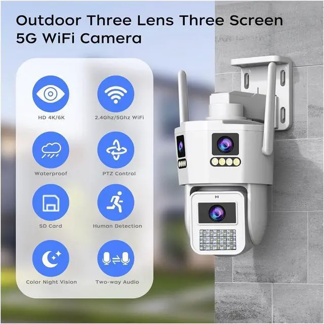 Dual-band WiFi + wired dual connection: Supports 2.4GHz/5GHz dual-band WiFi, suitable for different network environments. It can also be connected via an RJ-45 network cable to avoid wireless signal interference. Whether in a close indoor area or in complex outdoor environments, it can maintain a smooth remote monitoring experience.