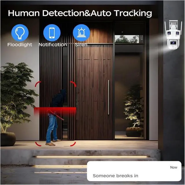 AI triple security + automatic tracking: Equipped with human detection, movement tracking, and abnormal sound detection functions. It accurately identifies potential risks, filters out invalid interference such as pets and fallen leaves. Once an anomaly is detected, it sends a real-time alert and automatically follows the target. It builds a defense line for family and property safety.