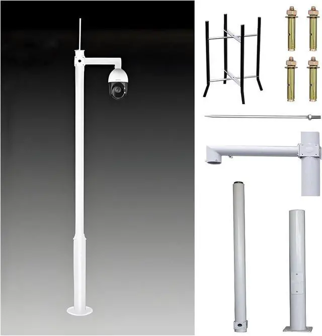 Easy Assemble: The segmented combined surveillance camera pole is assembled from 2-3 sections of poles, which is easy to transport and install, and is equipped with mounting screws and ground cages