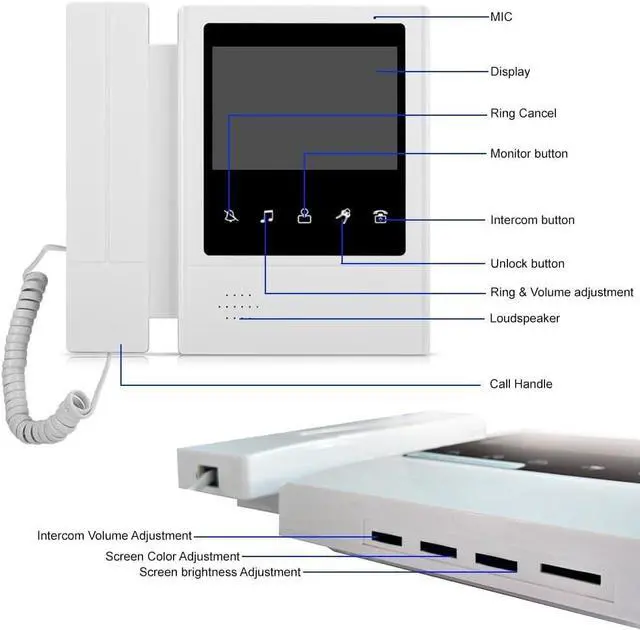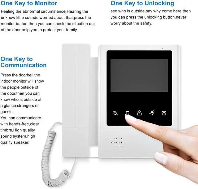 4.3 INCH MONITOR&Handsfree handle call:Supports hands-free and handle call, clear voice and good sound quality. Very easy to adjust the brightness, volume, contrast and 25 ringtones of select, hands free intercom, electric unlocking functions, monitor the outside view