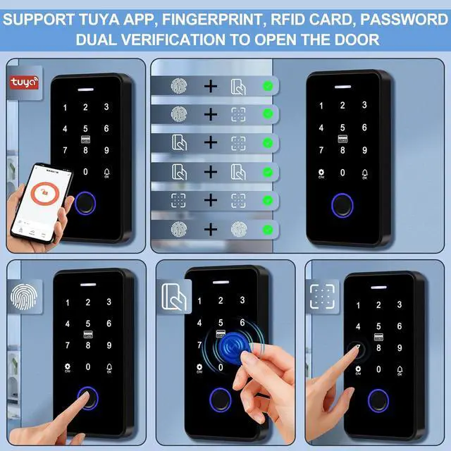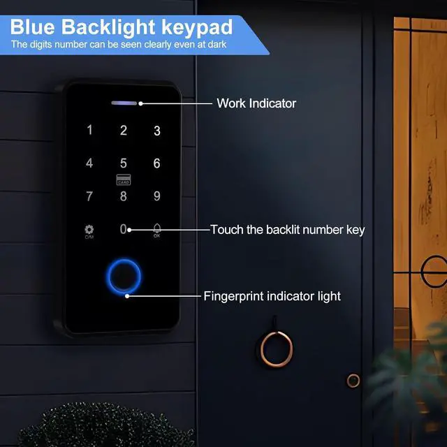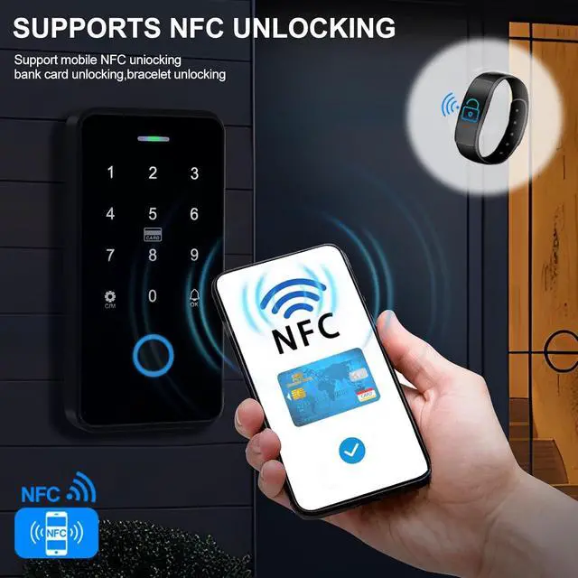 7.Unlocking method: Tuya app intelligent remote unlocking, fingerprint unlocking, mobile phone NFC unlocking, password unlocking, keychain unlocking, etc.
