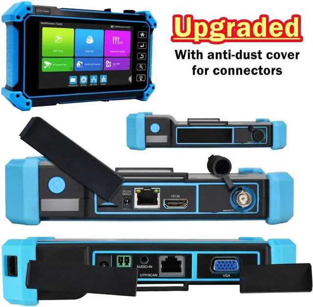 Multi-function tester: 5.4ch 1920x1152P touch screen can display its genuine resolution of the IP camera images. Built-in media player. Built in WiFi, create WIFI hotspot. VGA & HDMI Input, LED lamp, calculators, support snapshot, video record & playback; The camera tester uses Android system, so you can also install the APP you need.