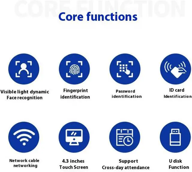STRONG SECURITY: This biometric attendance machine adopts a binocular facial recognition system to enhance security and performance, allowing dynamic facial recognition and card swiping to strengthen access control