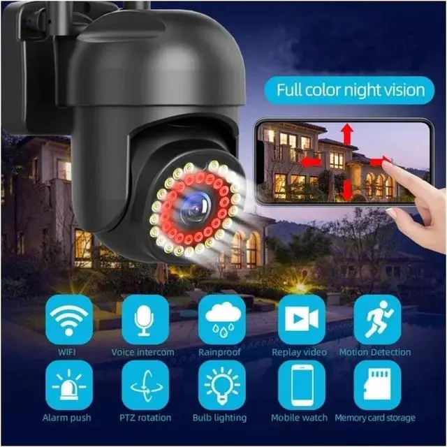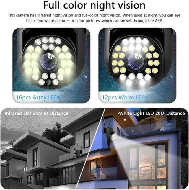 Full-color night vision + low-power storage, more convenient for day and night use: built-in 16 infrared lights + 12 white light, supports three night vision modes (infrared / full color / dual light) under 0.001Lux ultra-low illumination, 30-meter clear night scene; H.265X encoding technology significantly reduces TF card storage occupation (supports 128G, needs to be prepared yourself), more stable and durable video recording, lower long-term usage cost.