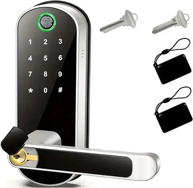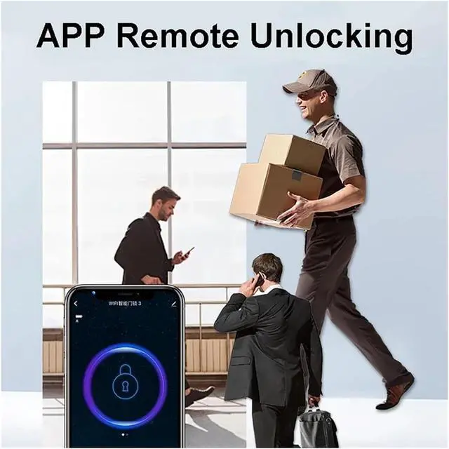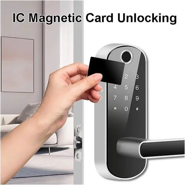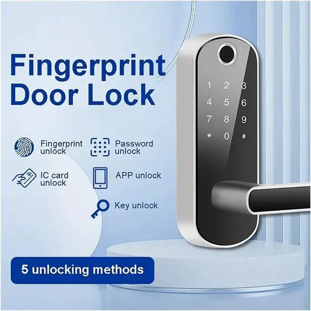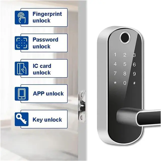 Five-in-one Smart entry - Unlock via fingerprint (0.3 seconds), password, IC card, Tuya/TTLock APP or touchscreen, convenient for home/office.