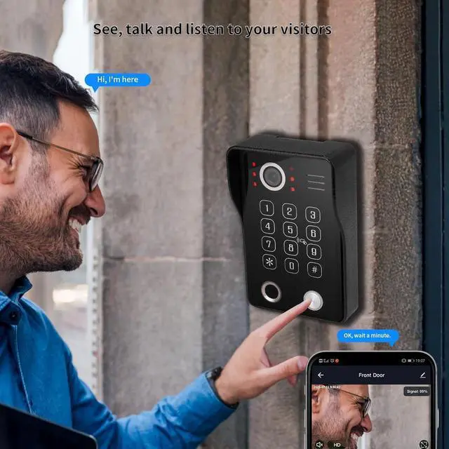 DUAL-WAY INTERCOM:Experience enhanced security and convenience with our cutting-edge Smart Video Doorbell. Utilizing advanced IP technology, this innovative device enables real-time monitoring, ensuring you never miss a visitor again. When someone rings your doorbell, you'll receive an instant call through the TUYA app on your smartphone, allowing you to see, hear, and communicate with anyone at your door from anywhere in the world.
