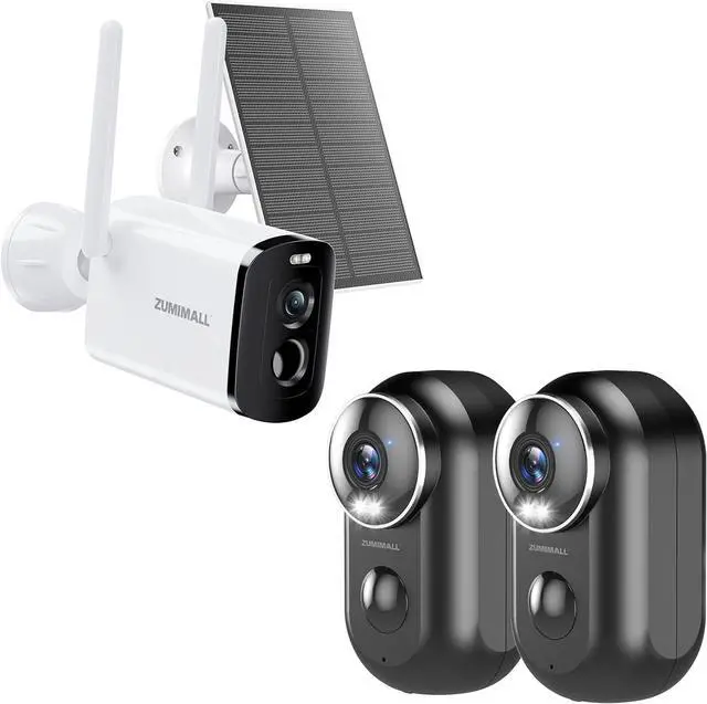 ZUMIMALL Solar Security Cameras Wireless Outdoor, 2K Camera for Home Security with 3MP Color Night Vision, 2.4GHz WiFi, 2-Way Talk, Spotlight & Siren, IP66 Weatherproof, Compatible with Alexa
