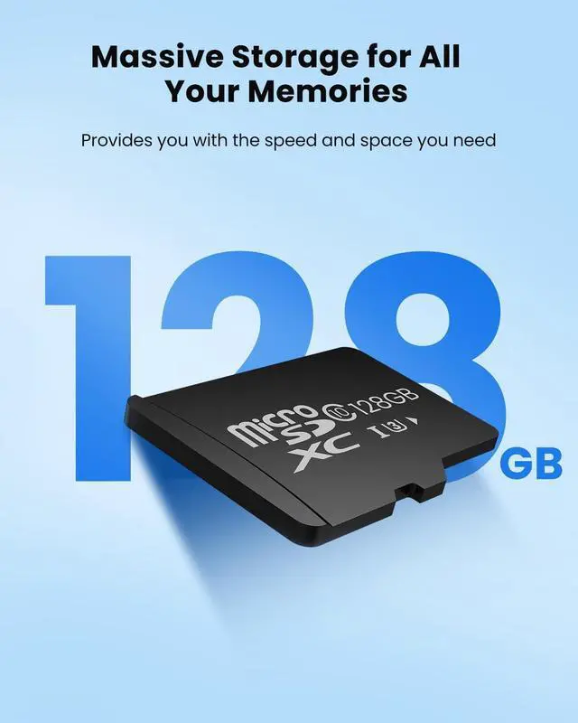 Local 128G SD Card - Ultra Fast SpeedObligz 128GB microSD adopts U3, V30, A1 rated. Offers 100 MB/s of read speed and 40 MB/s of write speed, supports full HD recording. Note: Read/write speeds based on internally controlled tests. Actual speeds may vary by device, interface, usage conditions, etc.