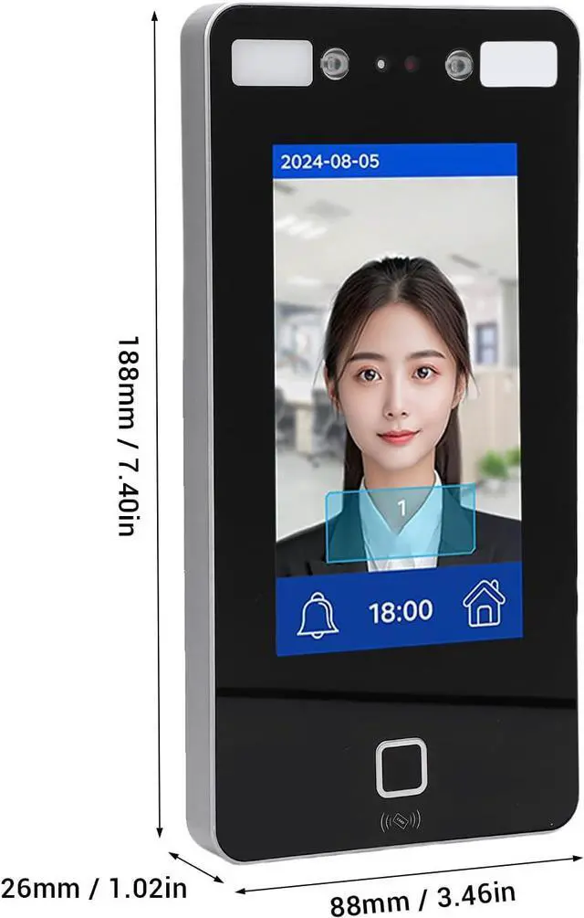 [High Security Ai Recognition] The access control time attendance machine features advanced two eye recognition technology combined with infrared live detection to ensure only genuine faces can pass.