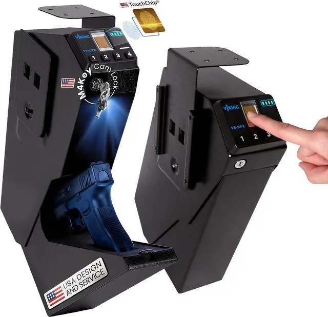 Viking Security Safe VS-11PZ Quick Access Biometric Handgun Safe Fingerprint Access Liveness Recognition Detection Sensor for Pistol & Single Firearm Biometric for Handgun