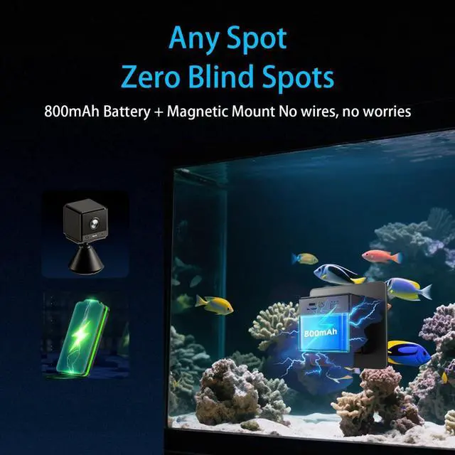 EFFORTLESS SETUP & ZERO BLIND SPOTS: Peel-and-stick adhesive for the camera, suction-cup mounts for the incubator; 800 mAh rechargeable battery and magnetic mount mean no wires, complete coverage.