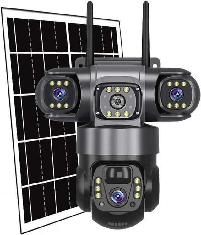 15MP 8K Three-lens + Three Screens: Composed of three high-spec lenses, it offers 15MP 8K ultra-high-definition quality. Three screens simultaneously present different areas of the picture, combined with 10x digital zoom, distant details are magnified and remain clear; the top dual lenses can be manually adjusted (horizontal 0°-180°, vertical 0°-360°), and the bottom lens supports 355° horizontal + 90° vertical remote rotation, providing a full coverage without blind spots. This single device is comparable to multiple ordinary cameras.