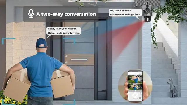 6MP Dual-Lens Precision: Dual 3MP lenses (180° wide-angle + 60° focus) with 4X digital zoom. T40N+2063 chip ensures 6MP ultra-HD clarity day and night.