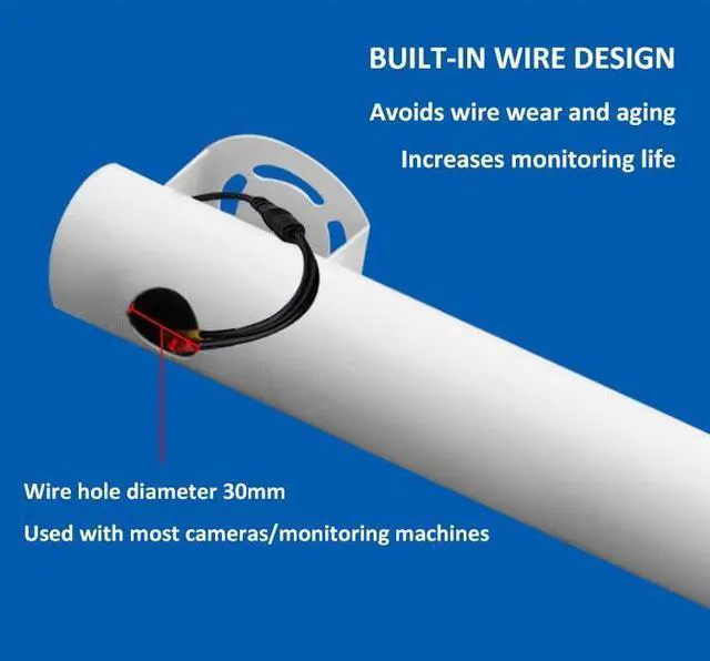1Integrated Cable Management: Includes a built-in cable channel to neatly conceal and protect wires from environmental elements and physical damage, enhancing both safety and aesthetics of your surveillance setup.