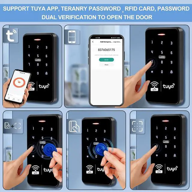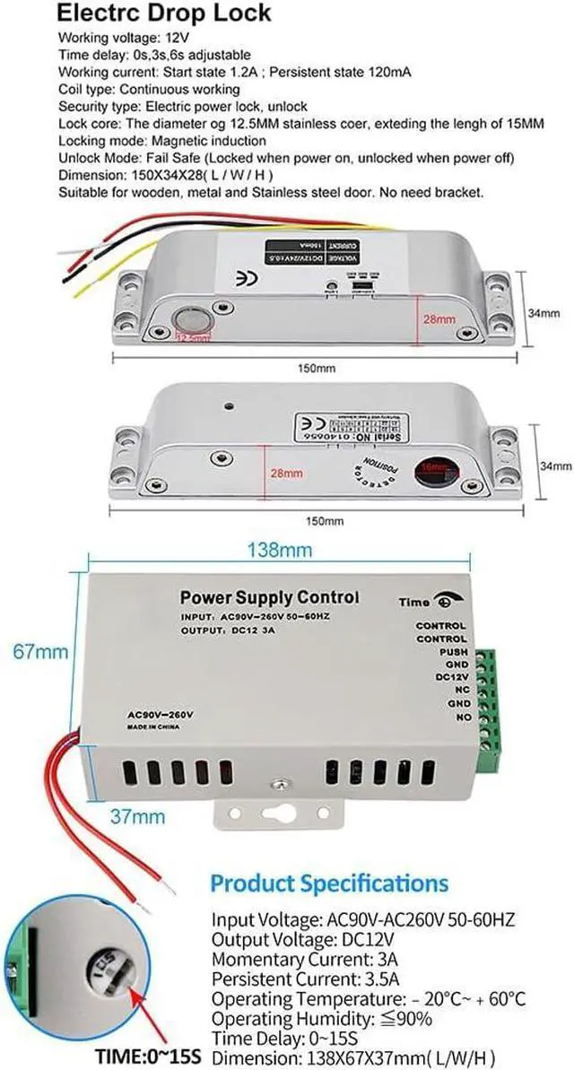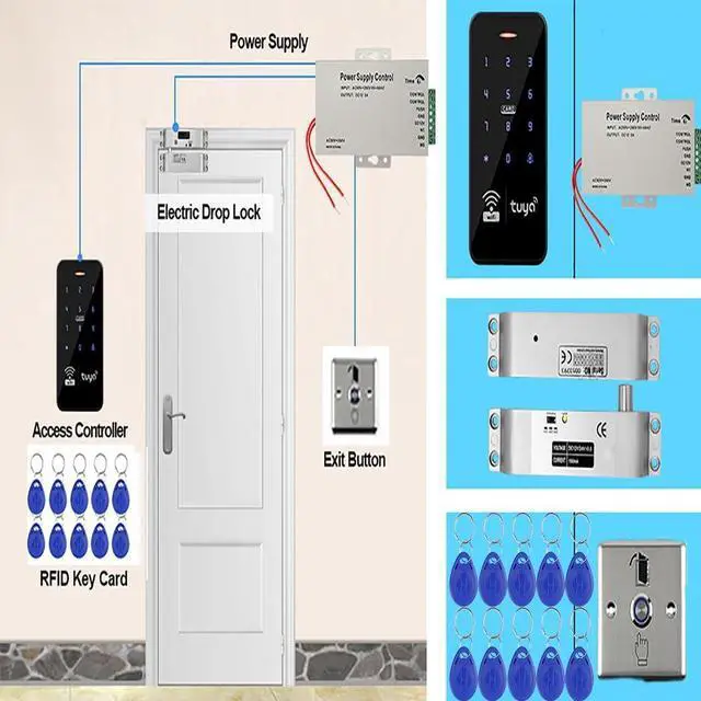6. Package Includes: 1x Access Control Keypad Host 1x Power Supply 1x Electric Bolt Lock 1x Switch 5xRFID ID Keychain(Blue), 5xRFID IC Keychain(Blue) 1x User manual 1x ZL Bracket