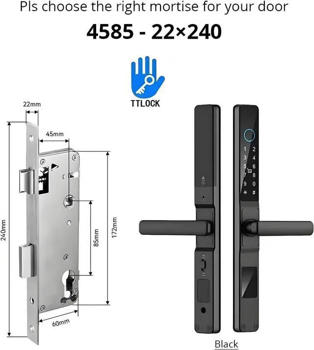 5 Unlock Methods: Operate via TTLock App, FPC semiconductor fingerprint sensor (0.3s read), digital code, RFID cards, or mechanical keys.