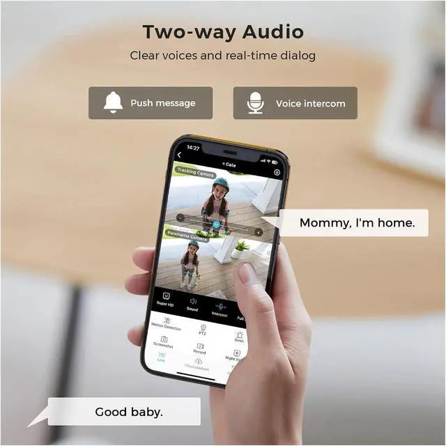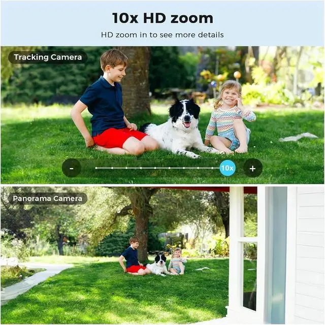 320° Panoramic Gimbal + AI Human Figure Tracking The bottom camera supports 320° horizontal and 90° vertical rotation. The AI human figure detection accurately filters out pet and vehicle interference. After locking onto the target, it automatically tracks the movement trajectory. The mobile phone receives real-time alarm notifications. After the target disappears, it returns to the preset position 60 seconds later, with a false alarm rate of less than 2%.