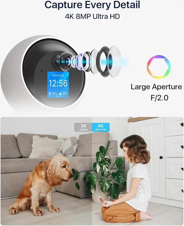 [4K 8MP UHD 360° View] ZOSI 4K pan/tilt indoor camera provides crystal-clear 360° View with 4K UHD resolution. Whether you're monitoring your baby's room, keeping an eye on the elderly, or ensuring the safety of your home, this 4K security camera delivers exceptional detail and clarity. With 33ft night vision, you can see clearly even in midnight.