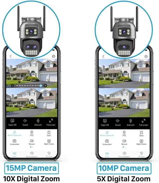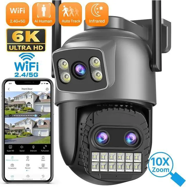Three-Lens Dual-Screen 15MP Ultra-High Definition : Three 5MP lenses intelligently combine a 15-megapixel image quality. The dual screens simultaneously display panoramic and close-up images. The bottom dual lenses support 10x intelligent zoom, making the details of targets at a distance of 100 meters clear and distinguishable. The 6K resolution presents a stunning visual experience.