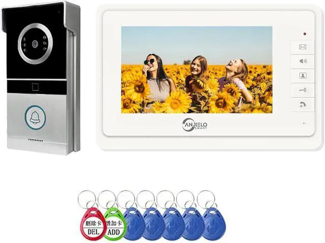 Four-Wire Video Intercom System:Equipped with a 7-inch color LCD display, this system features a built-in simple operating system, an ultra-thin design, and modern buttons. The outdoor doorbell includes a camera with night vision and a rainproof cover. (Please note: Extension cables are not included in the package, but we provide a 4-pin connector for connecting extension cables.)