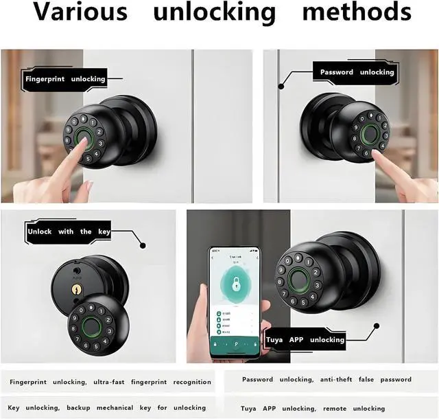 Keyless Access Solution: Provides fingerprint recognition and password authentication for bedroom, office, or apartment entry