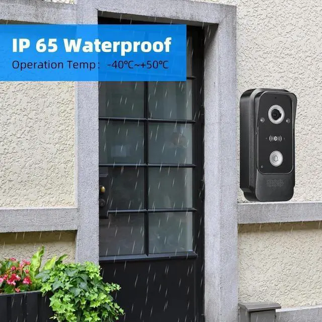 7 INCH TOUCH MONITOE AND 1080P DOORBELL:7 inch touch screen monitor, touch operation, hands-free, support Wifi to connect to the Internet. Outdoor doorbell with waterproof cover, built-in infrared sensor and 1080P camera,120°to 140 °wide angle, night vision, waterproof, dustproof and vandal resistant. You can connect all 12V electronic locks.