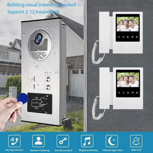 Multi-Family Design: 1 outdoor camera and 2/4/6/8/10/12 indoor screens for visual intercom doorbell system, supports 2/4/6/8/10/12 occupants in one building. Individual monitors without interfering with each other