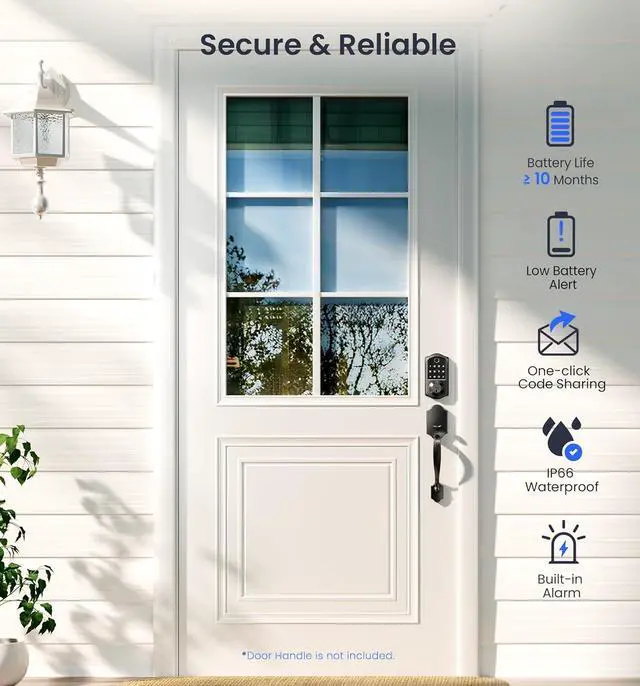 Enhanced Protection & Durability: ANSI Grade 3 tested, this keypad door lock withstands extreme conditions. Nearly 500-day battery life plus an emergency power port avoid you being locked out