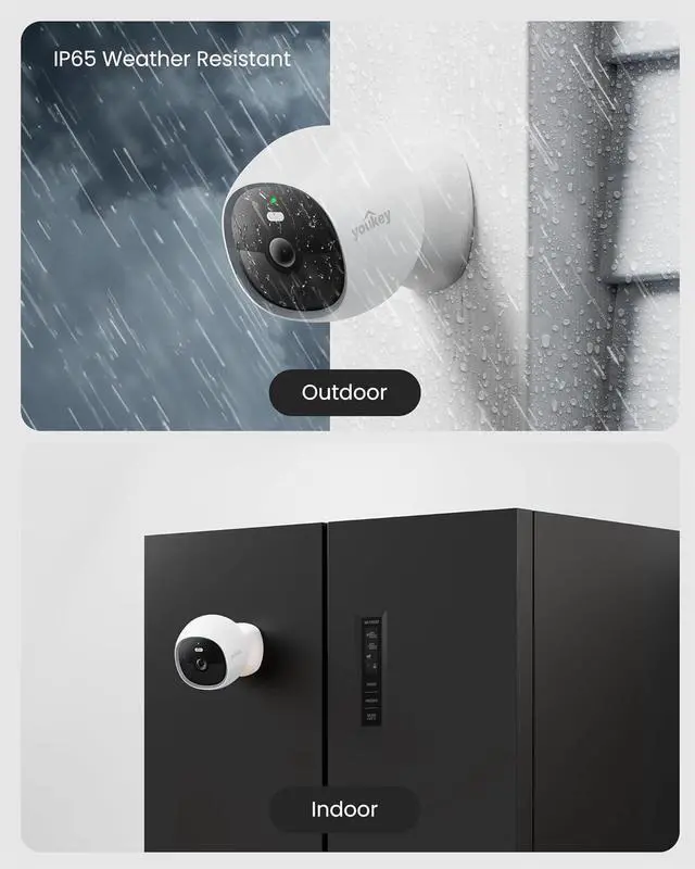 Works Perfectly Outdoors - the youkey S320 wireless camera and SP3 solar panel are IP65 water resistant. ensuring your security camera system works even with harash weathers.