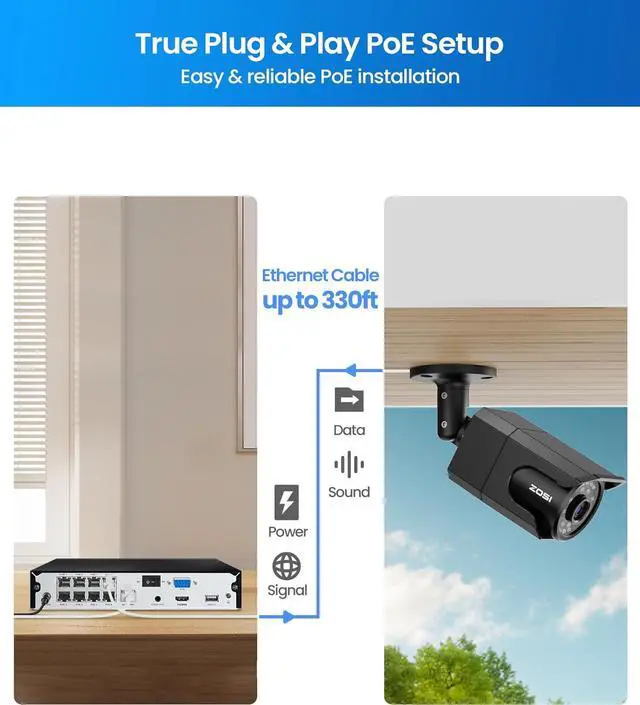 (1). [ Read Before Purchase ] __ This PoE camera is an add-on model with Ethernet cable and cannot be used independently. It only works with the ZOSI 4K PoE NVR.