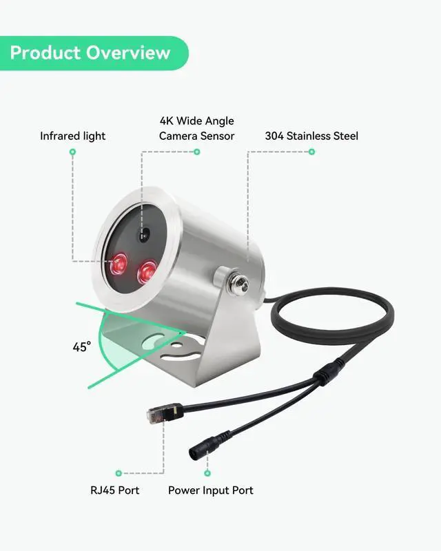 MAX 100ft NIGHT VISION DISTANCE - Equipped with 2 LEDs to enable max 100ft (30m) night vision distance.
