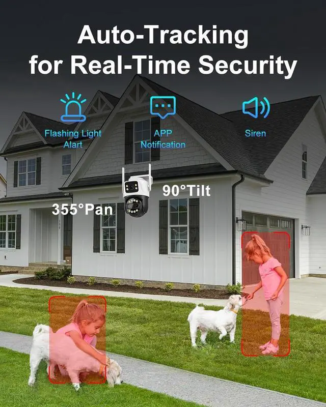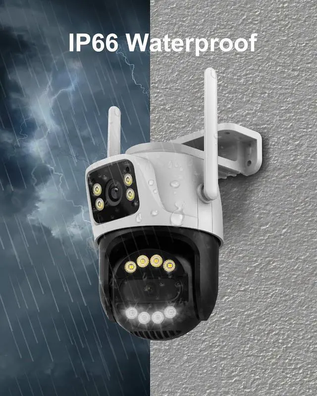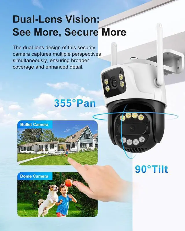 Dual Lens=One Camera, Two PerspectivesThe STONVUE 6MP Dual Lens WiFi Security Camera integrates two lenses into a single device, delivering dual functionality in one convenient package. Monitor two areas at the same time directly from your phone. One lens captures a wide panoramic view, while the other offers 355° pan and 90° tilt for comprehensive coverage without blind spots