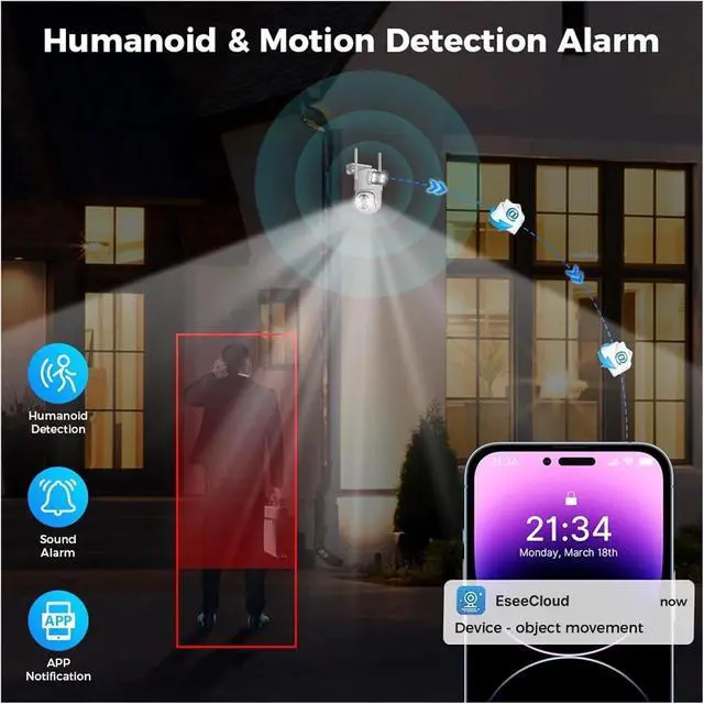 5. **Intelligent humanoid detection, real-time security guarding Equipped with intelligent humanoid detection technology, it accurately recognizes moving objects and reduces false alarms. Once abnormalities are detected, push notification is immediately sent via APP, allowing you to keep track of the monitoring dynamics and guard your home or store safety anytime, anywhere.