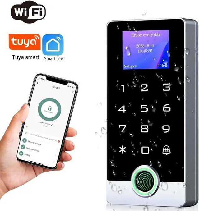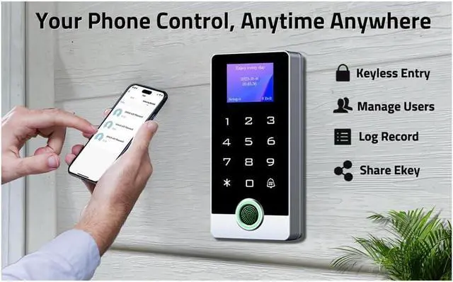 [Tuya Wireless Access Control System]Adopt touch code keypad panel and fingerprint identification with LED indication, Integrated wireless modules allows you to control the keypad from your phone, anytime and anywhere. Remote unlocking, set public password, share, modify and delete fingerprint/passwords/ID cards, view door opening records. Attention: connect to Tuya APP first need to turn on the keypad WIFI matching.