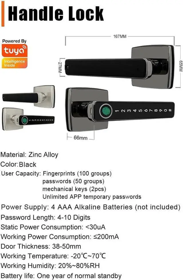 Comprehensive fingerprint management With the Tuya app you can set up up to 100 fingerprints on your door lock fingerprint handle so that you can easily divide access with family and friends. In real-time notifications about unlocking and locking activities, you can pursue who enters and leaves your room, even if you are gone. This control level enables you to effectively manage access, which makes it ideal for shared environments